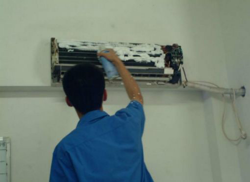| 渑池空调维修师傅给渑池用户上门维修清洗空调。 |